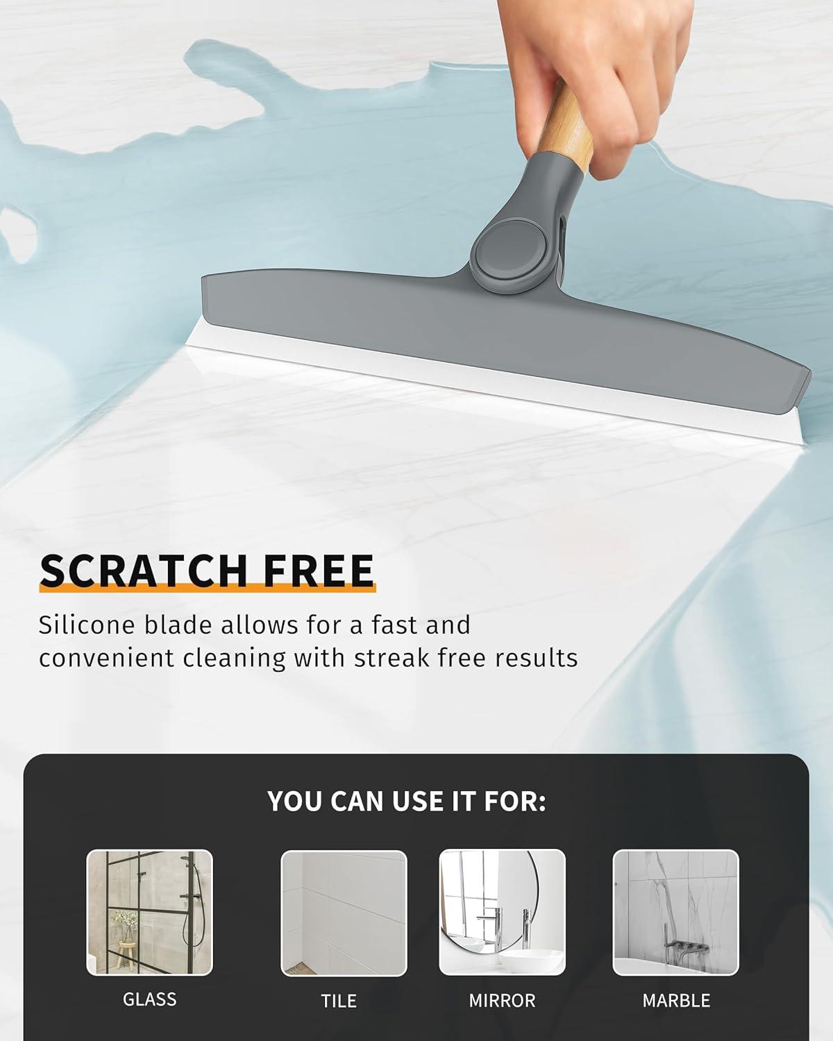 Streak Free Squeegee: The 10-inch wide silicone blade effortlessly glides across smooth surfaces, removing water droplets seamlessly to leave behind a crystal-clear, streak-free finish, enhancing the look and feel of your home.